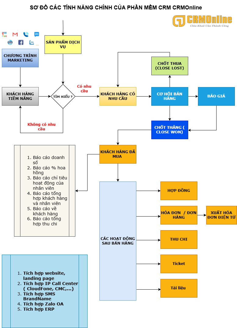 Sơ đồ tính năng phần mềm CRMOnline